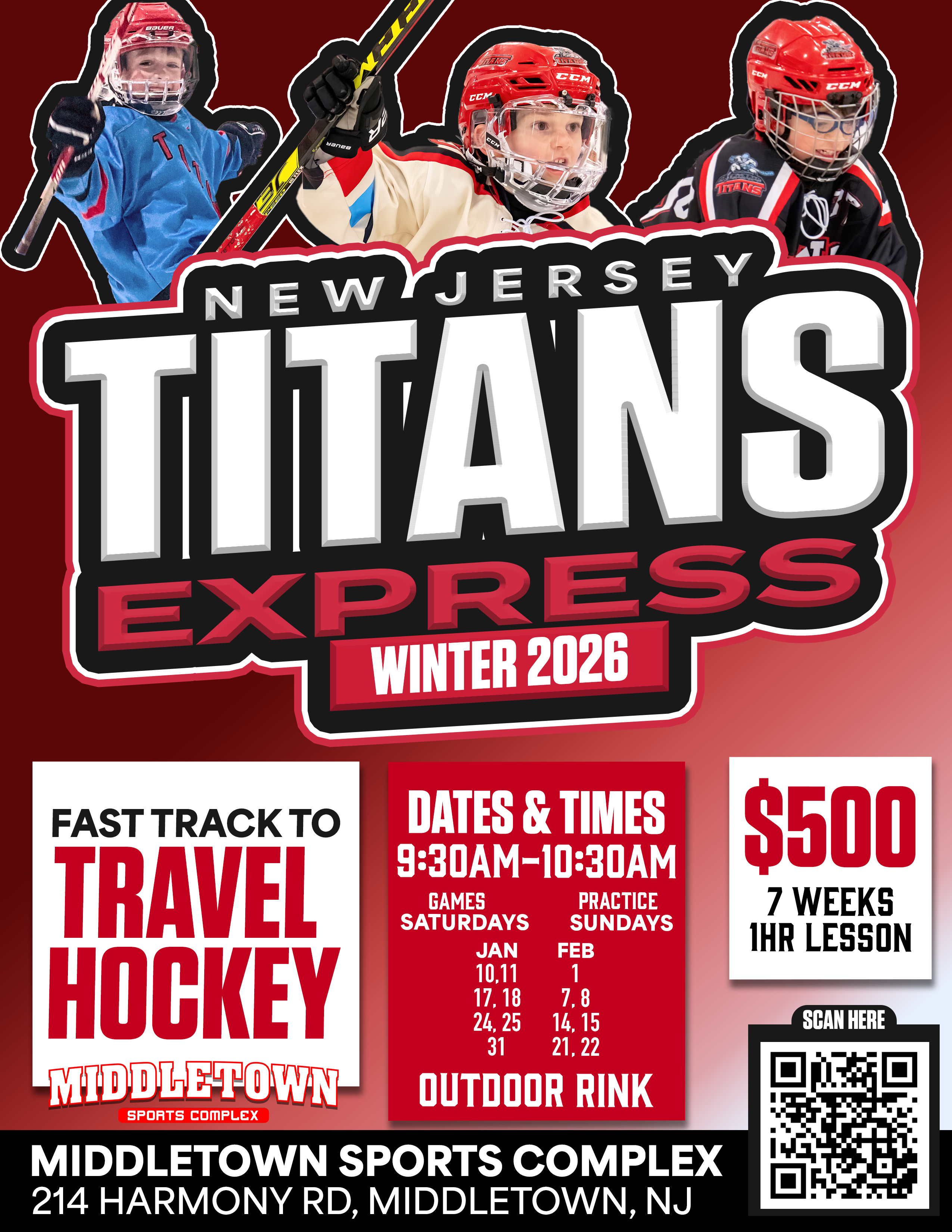 This program provides players with opportunities to compete in structured games, refine their skills through focused practices, and experience the excitement of team play. Titans Express is the ideal pathway for young athletes ready to embrace the challenges and rewards of competitive hockey while continuing their journey with the New Jersey Titans family.