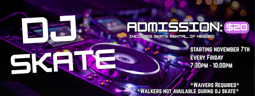 We are excited to announce that DJ Skate will start again on Friday, November 7th! Please check our calendar for our sessions throughout the season!